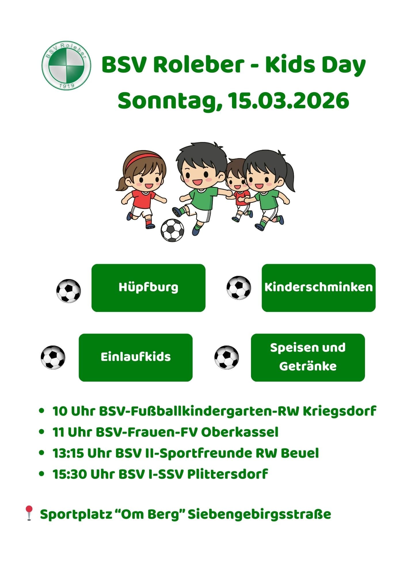 Die Geschäftsstelle im Vereinsheim ist mittwochs in der Zeit von 16:30 Uhr – 19:30 Uhr geöffnet. Außerhalb dieser Zeiten erreichen Sie uns unter bsvroleber(at)t-online.de oder Sie hinterlassen uns eine Nachricht unter Telefon 0228 481740.